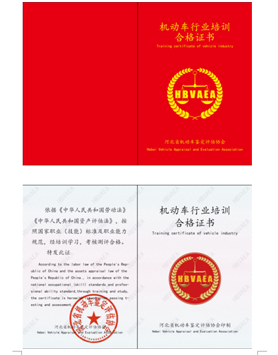 河北省机动车鉴定评估协会依据《中华人民共和国资产评估法》、《二手车流通管理办法》、《二手车鉴定评估技术规范》(GB/T30323-2013)和《中华人民共和国职业分类大典》等相关法律法规和职业标准及职业能力规范。根据国务院“放管服”要求,结合我省经济建设的实际情况,为规范河北省机动车鉴定评估行业秩序,促进行业发展,本协会积极响应政府号召,在全省范围内开展机动车行业培训考核工作并颁发相应合格证书,为行业输入高质量人才把好关。