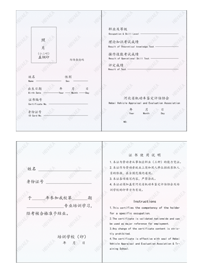 1. 机动车行业培训合格证书样证(9.5cm×13.5cm):