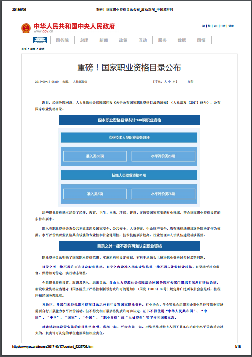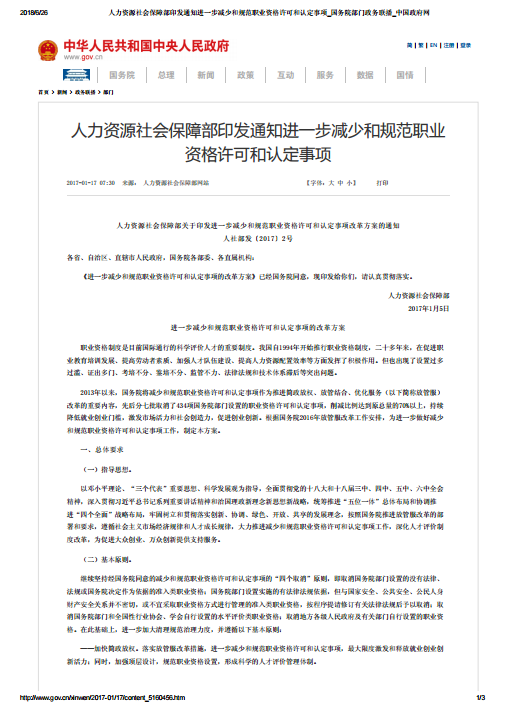 2017年1月人社部发布了《关于印发进一步减少和规范职业资格许可和认定事项改革方案的通知》最后一段明确指出:“突出市场导向。发挥市场在人力资源配置中的决定性作用,分类推进人才评价制度改革,更多发挥企业、行业和社会组织在人才评价中的重要作用,保障和落实用人单位自主权。”