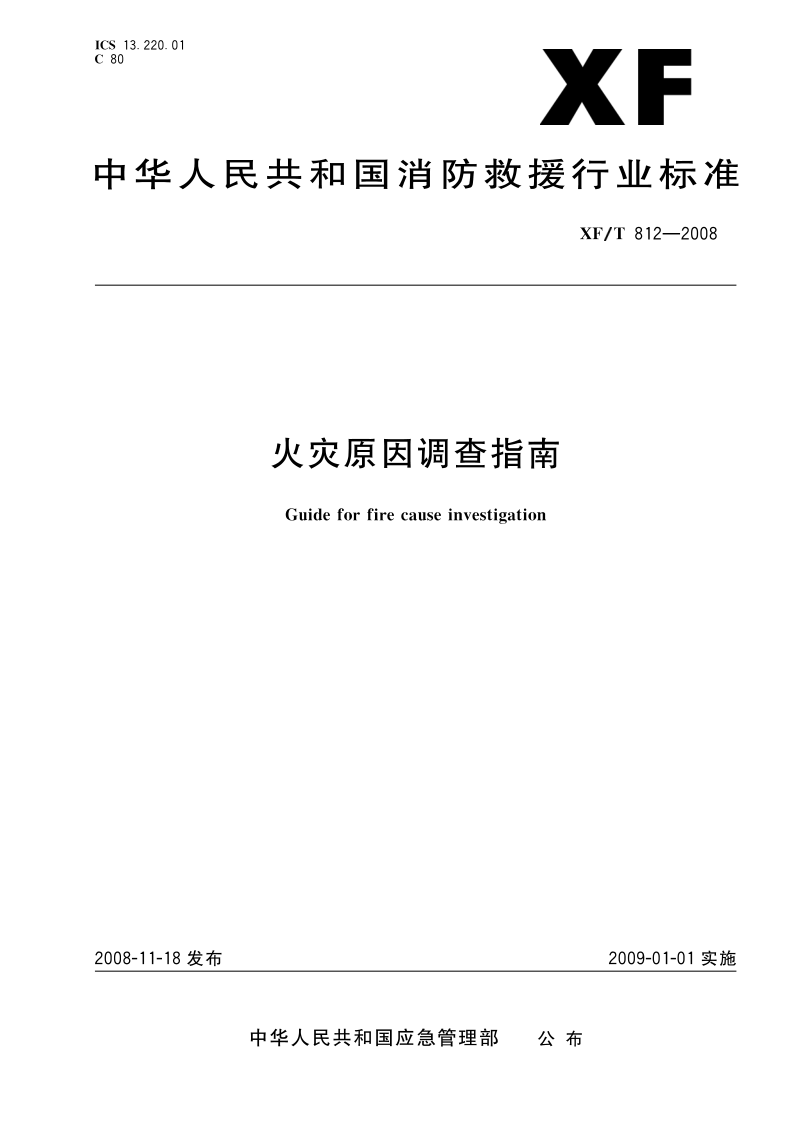 火灾原因调查指南 XF_T 812-2008 (现行)