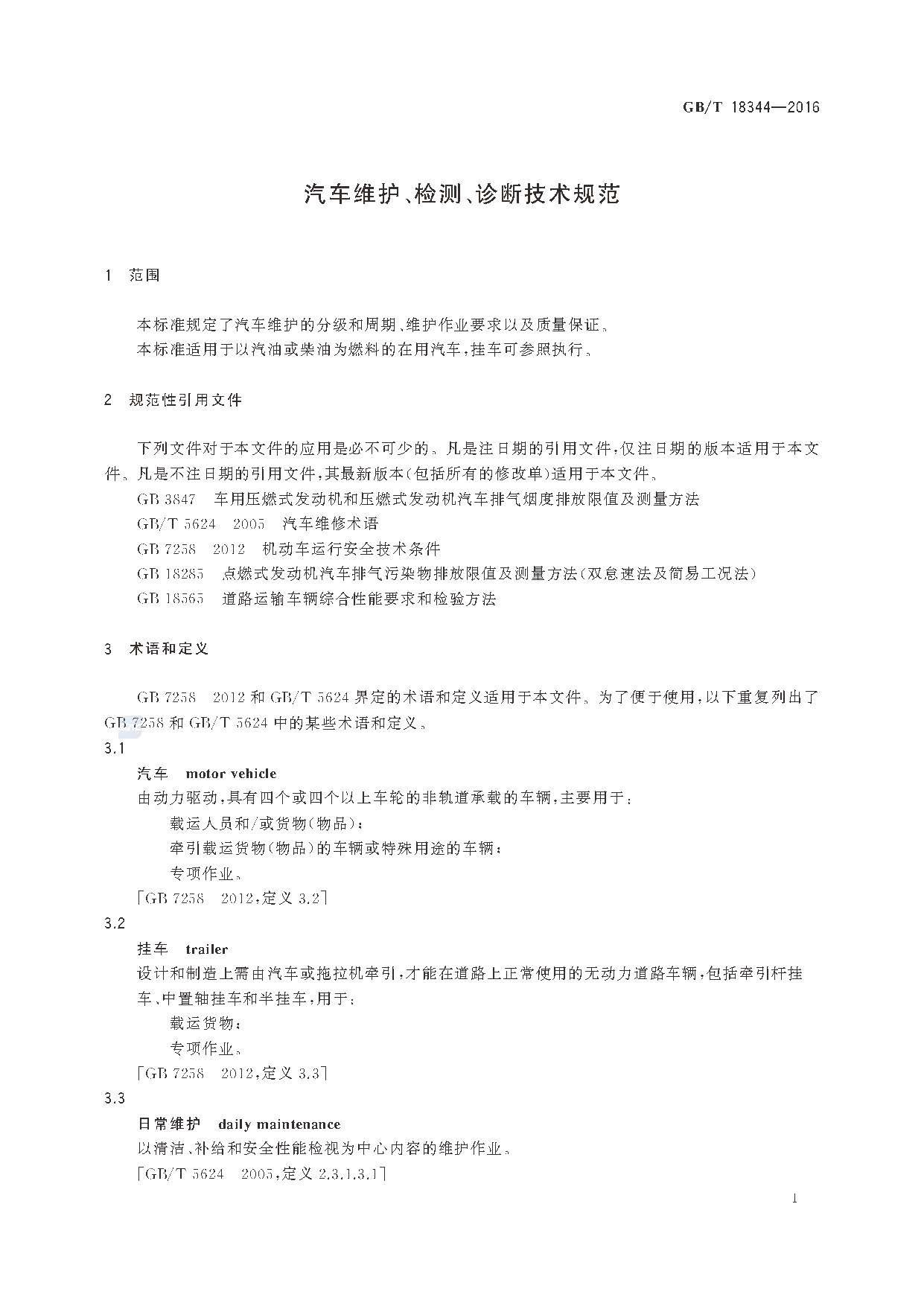 汽车维护、检测、诊断技术规范 GB/T18344-2016 (现行)