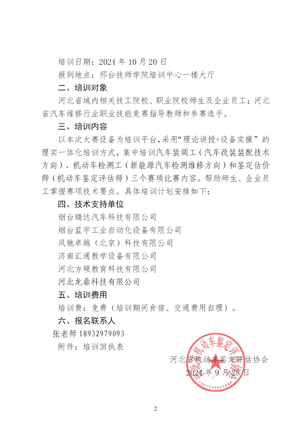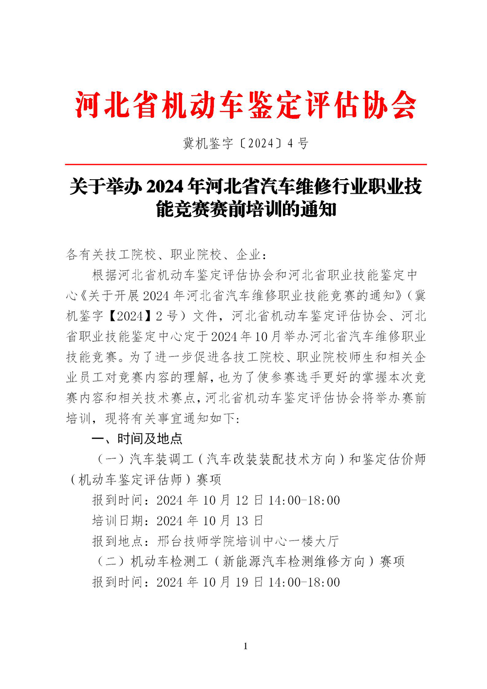 关于举办2024年河北省汽车维修行业职业技能竞赛赛前培训的通知