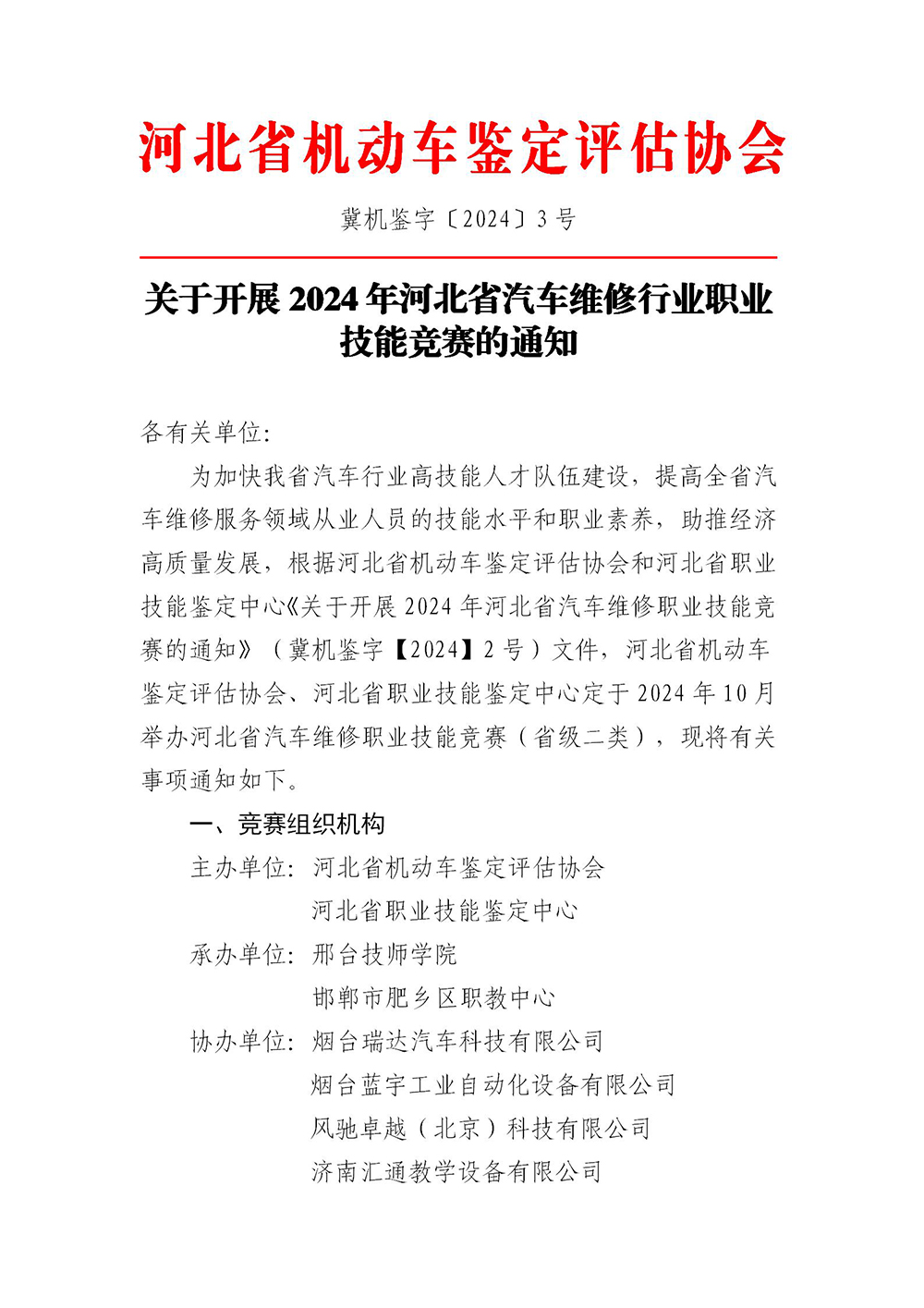 关于开展2024年河北省汽车维修行业职业技能竞赛的通知