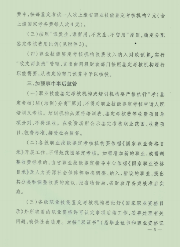 关于进一步规范全省职业技能鉴定考核收费标准的通知